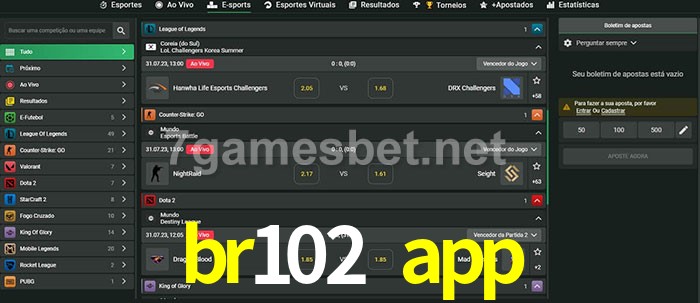 A aposta br102 app oferece aos jogadores a experiência mais conveniente de apostas em eSports!
